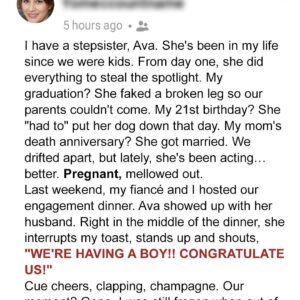 My stepsister Ava ruined my engagement dinner—but karma finally caught up with her. She’s been competing with me since childhood, always turning my milestones into her spotlight….