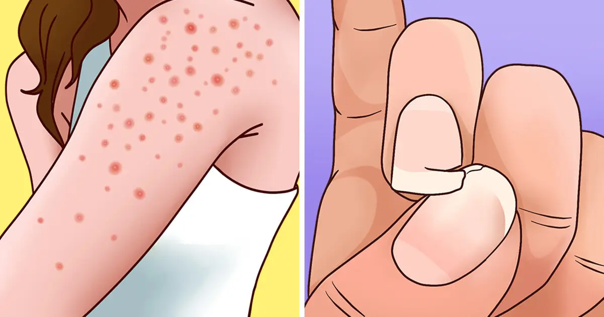 People with this condition might experience dry, flaky skin, persistent acne, or eczema-like rashes. Brittle nails that break easily or grow unevenly can also be a sign.