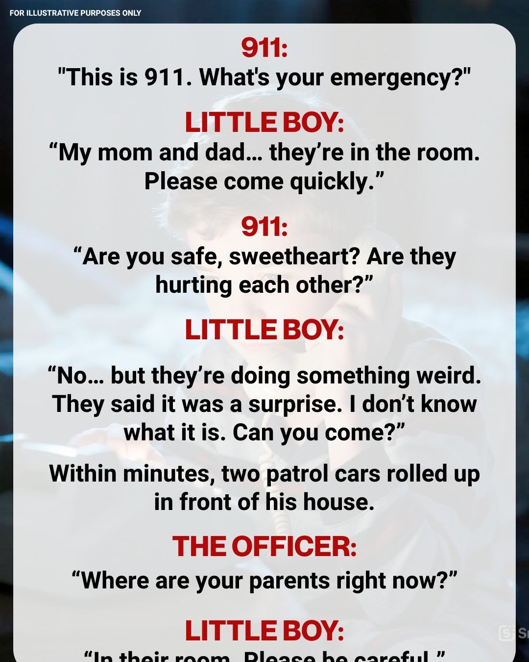 So, with small, trembling fingers, he pressed the three numbers he knew by heart. “911, what’s your emergency?” came the calm, steady voice of the dispatcher.