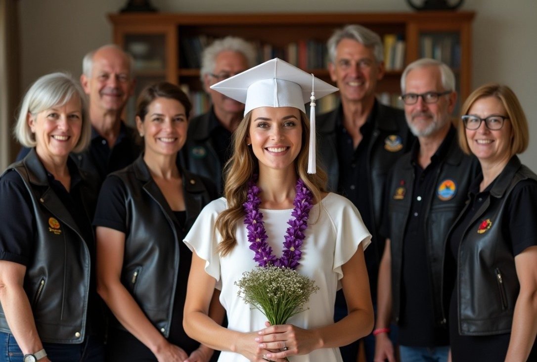 Emma stood on stage, her hand stuck midway to collect her diploma from the dean. The crowd stared as the bikers passed between rows of seated graduates. I felt a surge of protectiveness—I didn’t know these men, and I stood ready to shield her.