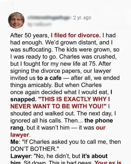 Though heartbroken, Charles respected her wishes, quietly believing that love sometimes meant letting go. After their divorce, their longtime family lawyer invited them to dinner at their favorite restaurant as a gesture of kindness.