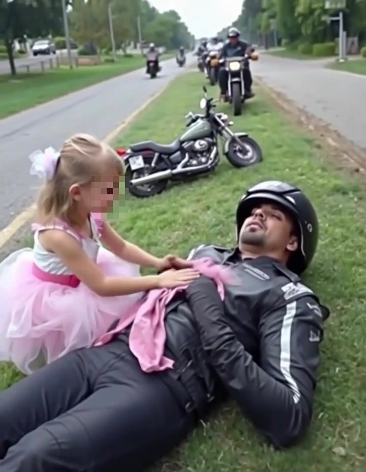 Jonas blinked through the haze of pain and confusion, catching sight of the little princess who had taken charge of his care. For a brief moment, his fear softened into something else—an odd mix of relief and disbelief. By now, the other bikers had pulled over, their engines shutting down one by one as they rushed toward their fallen brother.