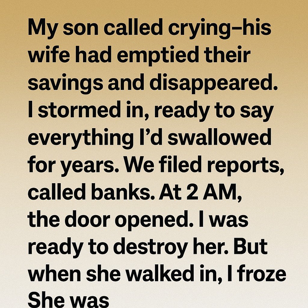 My son called crying—his wife had emptied their savings and disappeared. I stormed in, ready to say everything I’d swallowed for years. We filed reports, called banks.