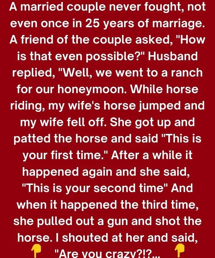 “A married couple never fought, not even once in 25 years of marriage.