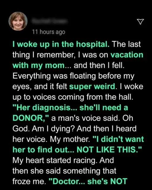 I planned a road trip with my mom to reconnect after years apart. It was supposed to be peaceful and nostalgic but an accident sent me to the hospital. That’s where I overheard a doctor say something shocking: my mom wasn’t my biological mother.