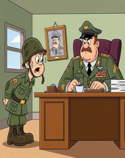 When the same soldier appeared again the third week, however, the Officer lost his temper. “Don`t tell me your wife is still expecting!” he bellowed.