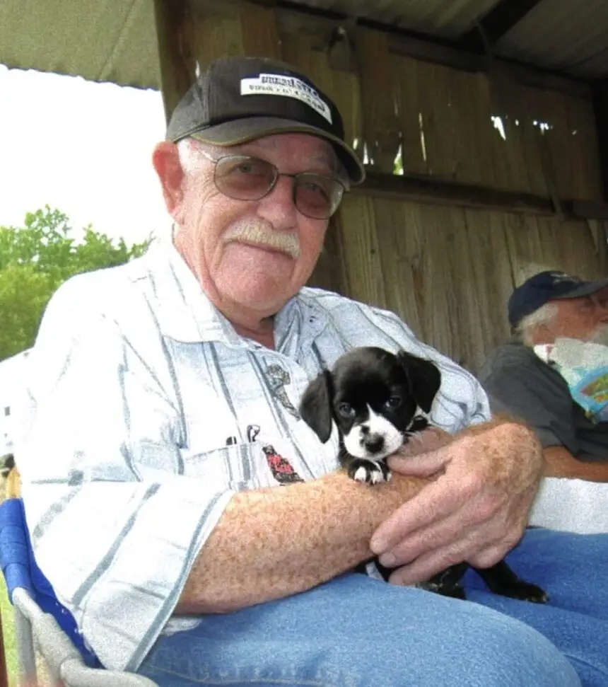 Burt’s arthritic knees protested as he bent down to investigate. Inside, a tiny black and white puppy shivered, its eyes large and pleading. A crumpled note was taped to the box: “Take care of him!”