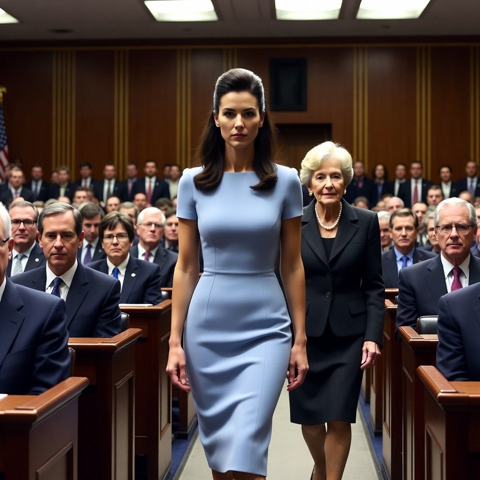 She wore a dark slate suit that seemed to command the room without effort. Conversations stopped. Even the judge looked up.