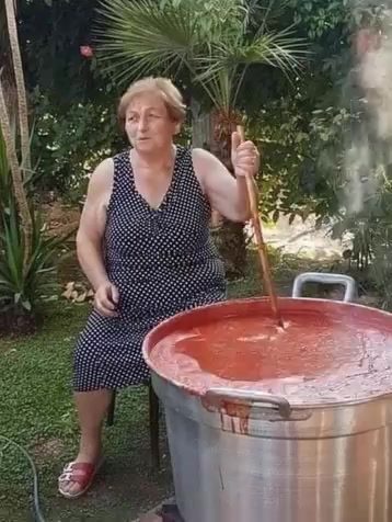 She starts the tomatoes before sunrise, same as always, stirring with that ridiculous wooden pole she’s had since the ’80s. Neighbors wave, joke about her “witch’s cauldron,” but no one complains. Until last week.