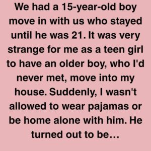 We had a 15-year-old boy move in with us who stayed until he was 21. It was very strange for me as a teen girl to have…
