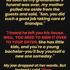 As soon as my grandfather’s funeral was over, my mother pulled me aside from the guests and said, “Son, you did such a good job taking care…