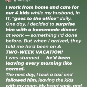 I planned to surprise my husband at work with lunch, but instead found out he was on vacation. Confused and suspicious, I followed him the next day…