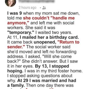 Twenty years after my mother walked out of my life, she showed up at my door with nothing but a grocery bag and demands. What she said…