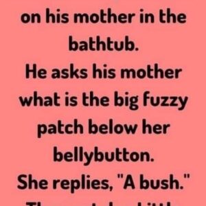 Little Johnny walks in on his mother in the bathtub .He asks his mother what is the big fuzzy patch below her bellybutton. She replies, “A bush….