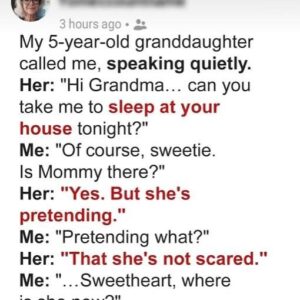 My five-year-old granddaughter Lila never calls me—so when her tiny voice whispered, “Mommy’s pretending not to be scared,” I knew something was wrong.She said Emma, my daughter,…