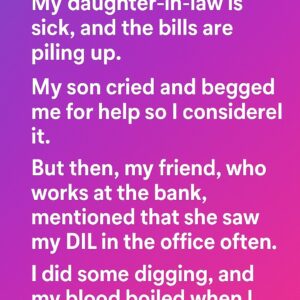 My daughter-in-law is sick, and the bills are piling up. My son cried and begged me for help, so I considered it. I’ve always done my best…