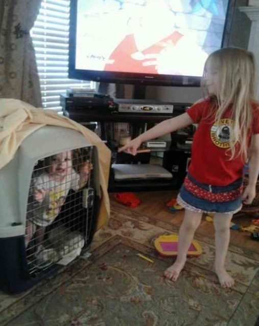 Kelsie looked up from her phone in the kitchen—calm as ever—and said, “Oh, they were playing zoo. She wanted to be the tiger.”