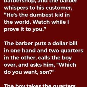 A young boy walks into a barbershop, and the barber whispers to his customer, “He’s the dumbest kid in the world. Watch while I prove it to…