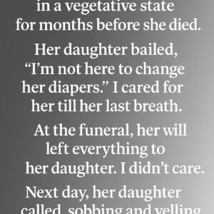 My stepmom got very ill, in a vegetative state for months before she died. Her daughter bailed, “I’m not here to change her diapers.” I cared for…