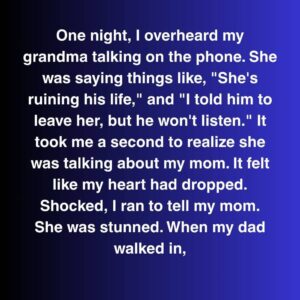One night, I heard my grandmother on the phone. She said, “She’s ruining his life,” and “I told him to leave her, but he won’t listen.” I…