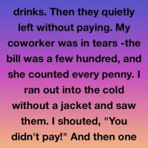 “2 men ordered food and drinks. Then they quietly left without paying. My coworker was in tears—the bill was a few hundred, and she counted every penny….