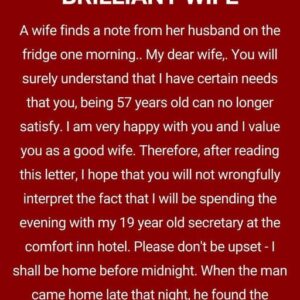 A wife finds a note from her husband on the fridge one morning.. My dear wife, You will surely understand that I have certain needs that you,…