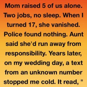 Mom raised 5 of us alone. Two jobs, no sleep. When I turned 17, she vanished. Police found nothing. Aunt said she’d run away from responsibility. Years…