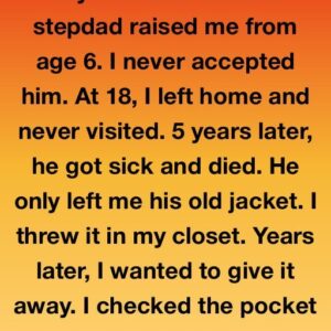 My real dad left and stepdad raised me from age 6. I never accepted him. At 18, I left home and never visited. 5 years later, he…