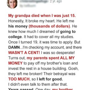 I grew up feeling like my parents favored my older brother, while my grandfather was the one who truly believed in me. He supported my dream of…
