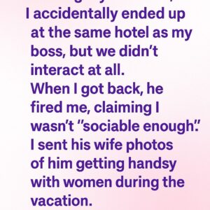 During my vacation, I unexpectedly found myself at the same hotel as my boss. It wasn’t planned—we simply chose the same destination. Although we crossed paths a…