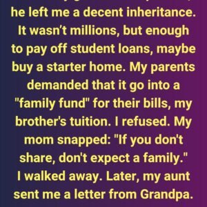 When my grandfather passed, he left me a decent inheritance. It wasn’t millions, but enough to pay off student loans, maybe buy a starter home. I was…