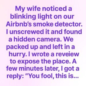 My wife noticed a blinking light on our Airbnb’s smoke detector. I climbed up, unscrewed the cover, and froze. Inside was a tiny lens — a hidden…