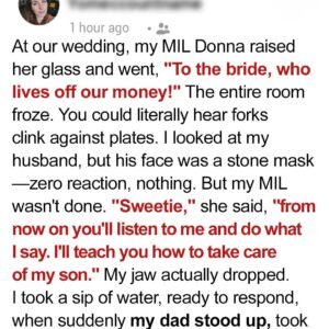 I thought my wedding day was perfect — until my mother-in-law stood to toast. With a smile, she raised her glass and said, “To the bride, who…