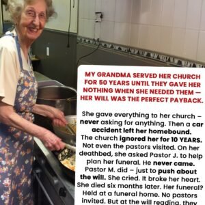 For nearly fifty years, Eleanor devoted her life to her church—teaching, cooking, giving, and loving without hesitation. She was a cornerstone of the congregation, a quiet presence…