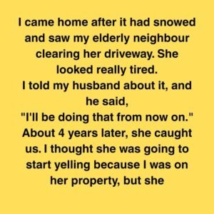 I came home after it had snowed and saw my elderly neighbour clearing her driveway. She looked really tired. I told my husband about it, and he…