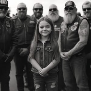 The little girl stepped into a biker bar a little after midnight, bare feet on cold concrete, pajama bottoms brushing her ankles, and she breathed four tiny…