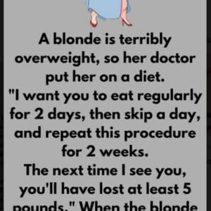 A blonde is terribly overweight, so her doctor put her on a diet. “I want you to eat regularly for 2 days, then skip a day, and…