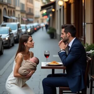 She knelt next to his table on the sidewalk, cradling her baby. “Please, I don’t want your money—just a moment of your time.” The man was unaware her words would shatter everything he thought he knew.