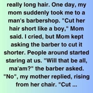 When I was in 9th grade, I had really long hair. One day, my mom suddenly took me to a man’s barbershop. “Cut her hair short like…
