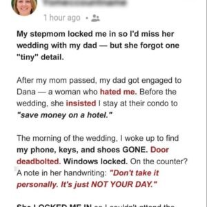 My Stepmother Locked Me In to Stop Me from Going to the Wedding — It Backfired SpectacularlyWhen my dad, 61, announced he was marrying his girlfriend Dana,…