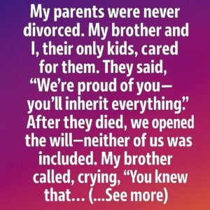 My parents were never divorced. My brother and I, their only kids, cared for them. They said, “We’re proud of you — you’ll inherit everything.” After they…