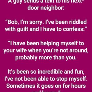 “I’m sorry, Bob,” a man texts his neighbor next door. I’ve been struggling with guilt, and I must admit that I’ve been taking advantage of your wife…