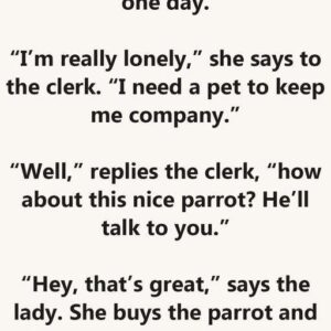 A lady goes into a pet store one day. “I’m really lonely,” she says to the clerk. “I need a pet to keep me company.” “Well,” replies…