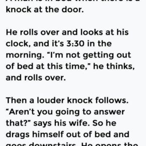 A man is in bed when there is a knock at the door. He rolls over and looks at his clock, and it’s 3:30 in the morning….