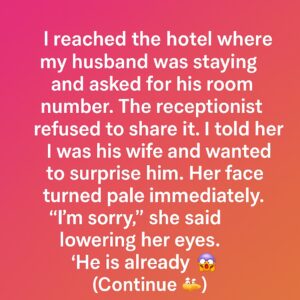 I reached the hotel where my husband was staying and asked for his room number. The receptionist smiled politely but shook her head. “I’m sorry, ma’am, we…