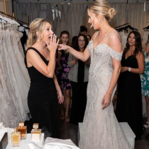 I walked into Everly & Co. Bridal in Charleston carrying my sister’s oversized designer tote like a pack mule. The place smelled of expensive perfume and steamed…