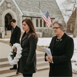 I stood at the chapel entrance clutching a wreath, only to be blocked by my mother’s husband. He whispered that I had lost the right to mourn…