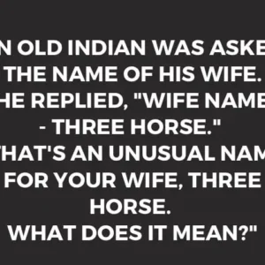 An old Indian was asked the name of his wife. He replied, “Wife Name – Three Horse.” “That’s an unusual name for your wife, Three Horse. What…