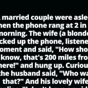 A married couple were asleep when the phone rang at 2 in the morning. The wife (a blonde) picked up the phone, listened for a moment, and…