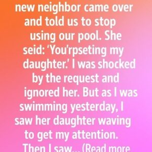 A few days ago, our new neighbor came over and told us to stop using our pool. She said, “You’re upsetting my daughter.” I was stunned by…